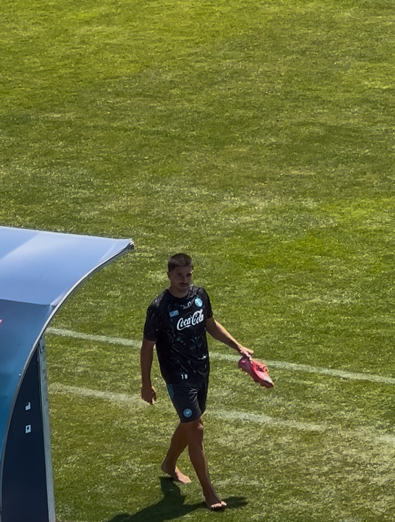 Quello di stamani, probabilmente, è stato l'ultimo allenamento di Giovanni Simeone con il Napoli. Al termine della seduta mattutina, alla quale ha partecipato attivamente in gruppo, l'argentino ha salutato i tifosi presenti al Patini con un giro di campo finale. Tanti applausi e il coro "Cholito uno di noi", dei tantissimi supporters azzurri presenti anche oggi a Castel di Sangro.