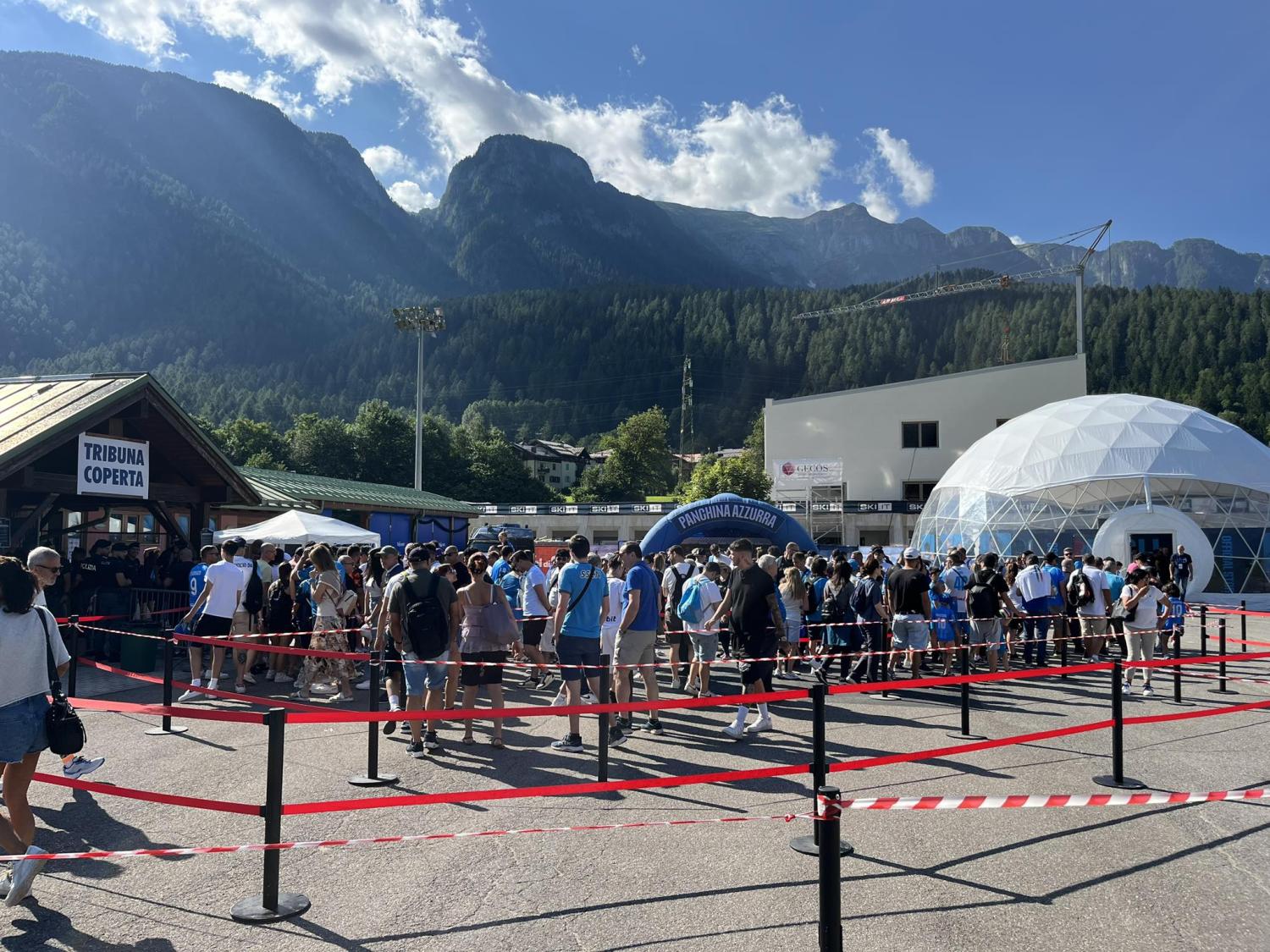 Come ogni weekend, l'affluenza a Dimaro cresce parecchio. Tant'è che oggi, all'esterno del campo di Carciato, è spuntato il 'serpentone', ossia un sistema di filtraggio per gli ingressi allo stadio affinché non si crei la calca vicino ai cancelli. Di seguito le immagini raccolte dai nostri inviati.