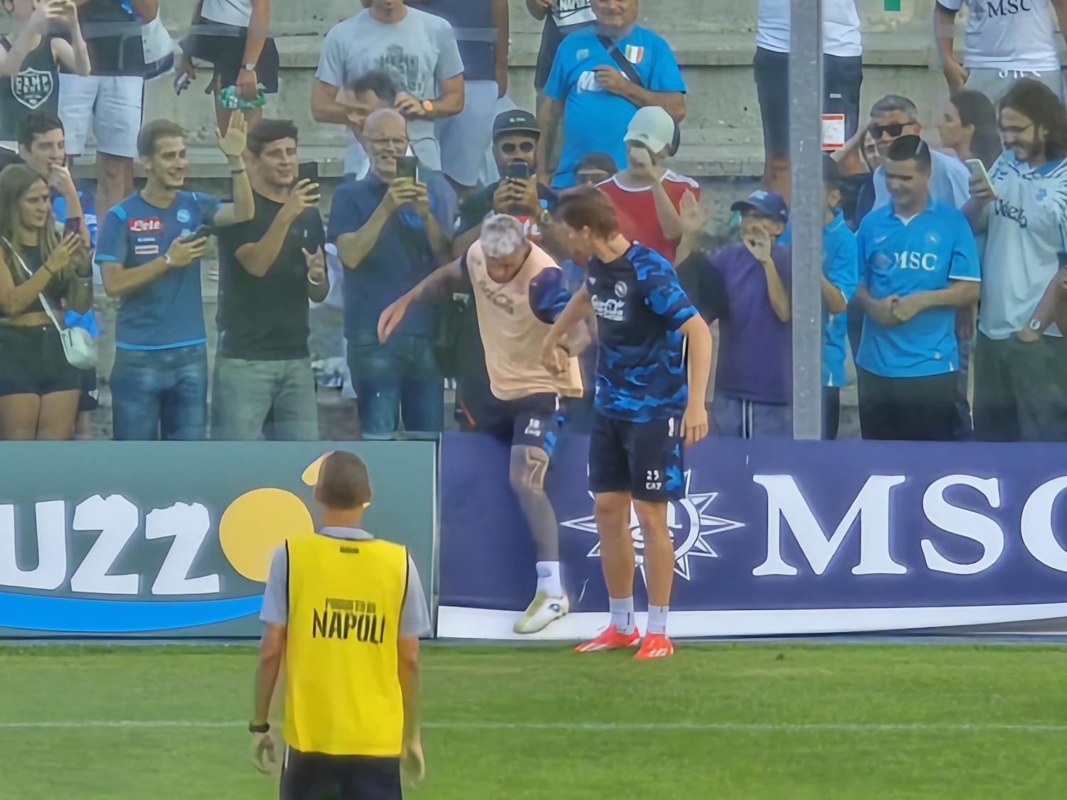 Piccolo 'inconveniente' per Pasquale Mazzocchi che durante la parte finale dell'allenamento pomeridiano è finito contro i cartelloni pubblicitari posizionati sui lati del campo: risate e applausi da parte dei tifosi subito dopo che l'esterno azzurro si è rialzato. Bellissima atmosfera anche quest'oggi sulle tribune. Di seguito le immagini dai nostri inviati: