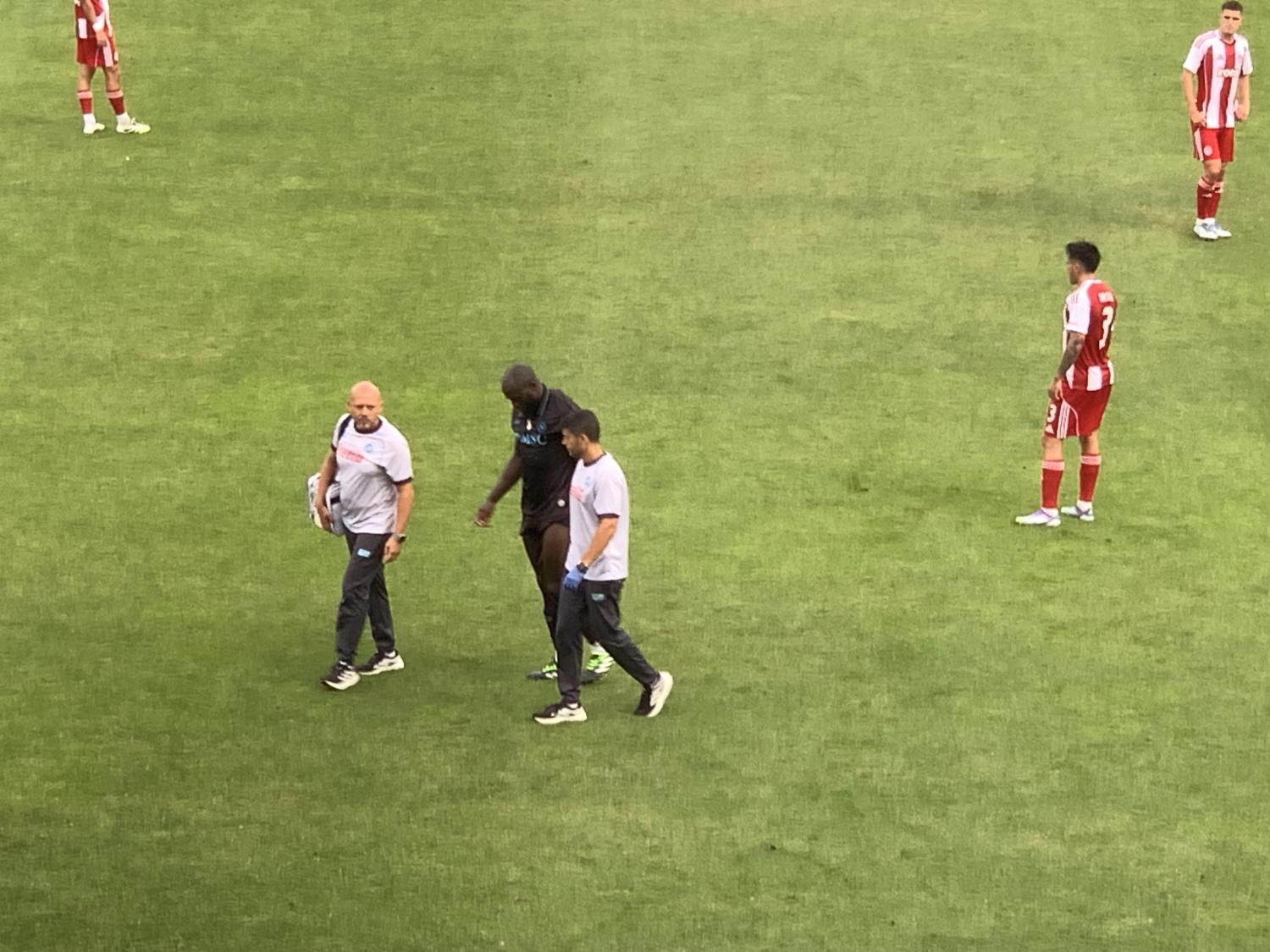 Infortunio per Romelu Luakaku al 31' di Napoli-Olympiacos! Recupero palla del belga che poi prova il tiro ed in quel momento si accascia toccandosi la coscia sinistra. Risentimento muscolare al quadricipite per Big Rom, che dopo le cure mediche dello staff sanitario abbandona il campo trascinando la gamba. Al suo posto entra Lorenzo Lucca. Di seguito le immagine raccolte dai nostri inviati a Castel di Sangro.