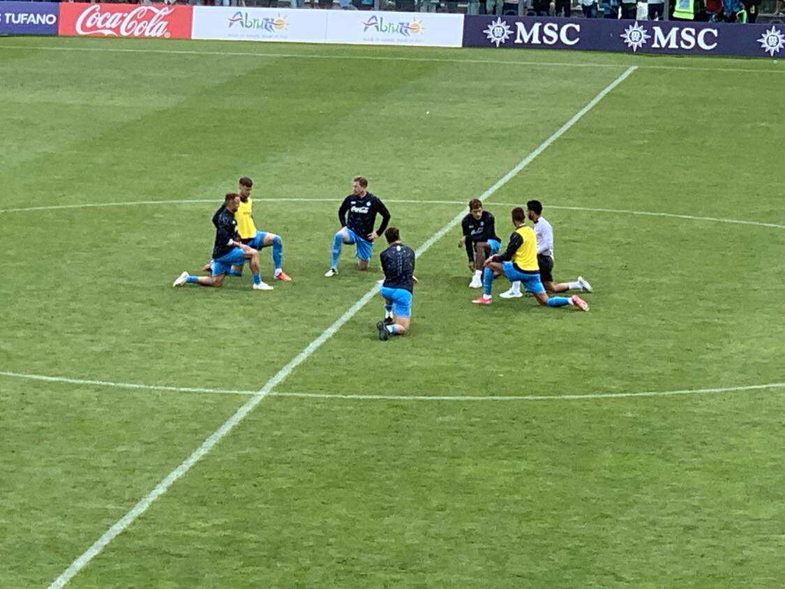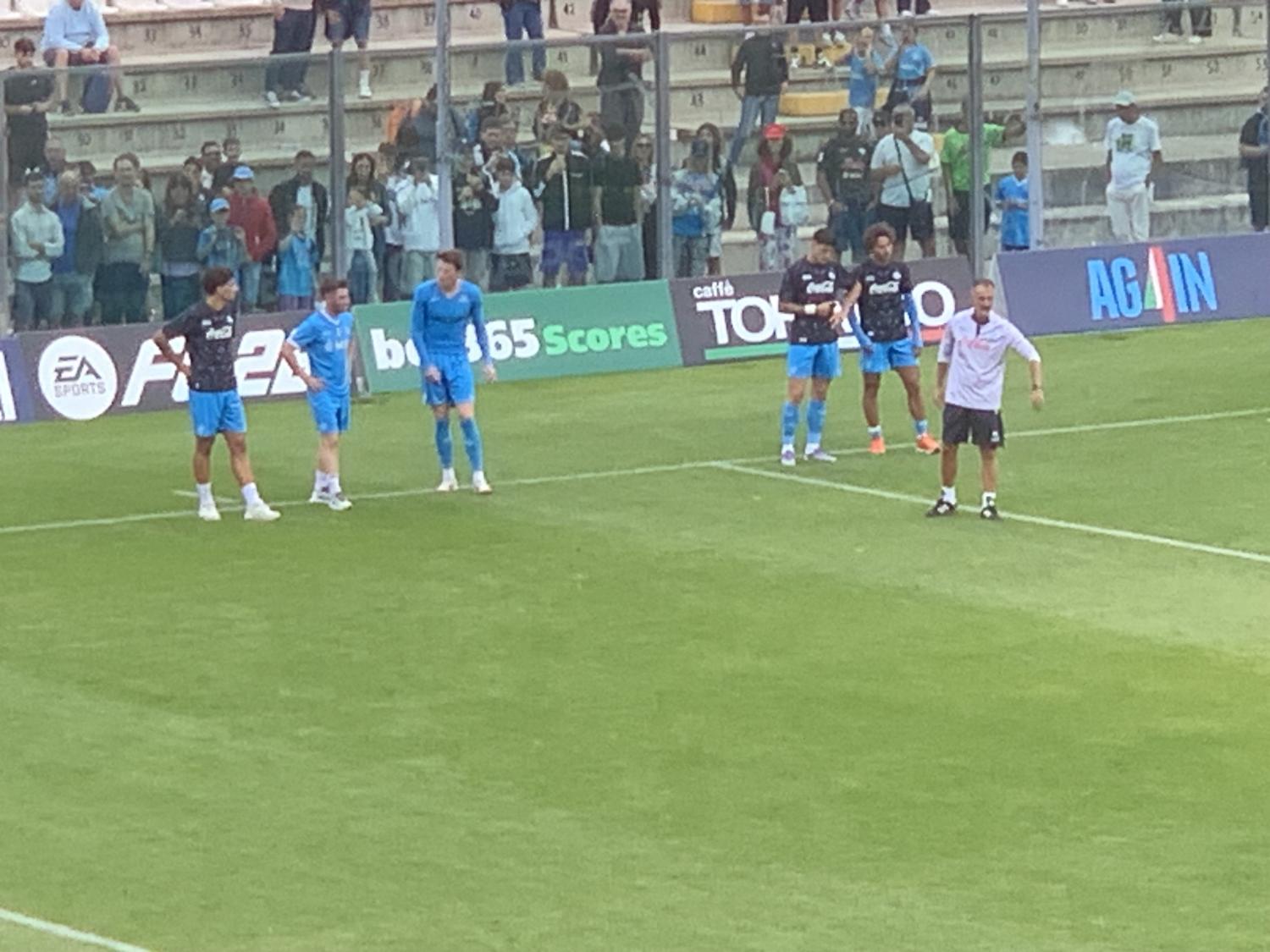 In precedenza il resto della squadra, che era in distinta ma che non ha preso parte al match. Ha fatto qualche esercizio di stretching nel cerchio di centrocampo. Questi gli azzurri che non hanno giocato contro la Casertana: Milinkovic-Savic, Ferrante, Buongiorno, De Bruyne, Rrahmani, Lucca, Beukema, Spinazzola, Lobotka, Lang e Raspadori. Di seguito le immagini raccolte dai nostri inviati.