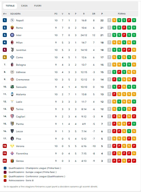 L'Inter passa la Bentegodi battendo il Verona al 94' grazie ad una rocambolesca autorete di Frese. La squadra di Chivu fatica, ma riesce ad approfittare del passo falso del Napoli, portandosi al terzo posto in classifica a -1 dai campioni d'Italia. Di seguito la classifica di Serie A aggiornata.