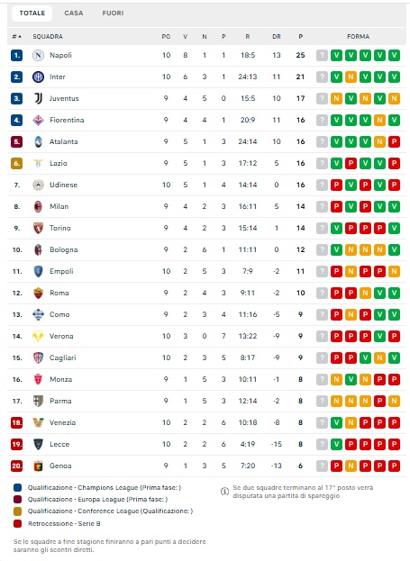 Bene il Venezia che trova un fondamentale successo in rimonta sull'Udinese che porta i ragazzi di Di Francesco a quota 8, al pari di Lecce, Parma e Monza. Di seguito la classifica aggiornata della Serie A: