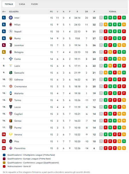 Dopo il ko di Napoli, la Juventus torna a vincere e manda un importantissimo segnale per quel che riguarda la corsa alla qualificazione per la prossima Champions League. Il successo per 1-0 in casa del Bologna porta ai bianconeri motivi per sorridere che vanno oltre i "semplici" 3 punti, con la classifica che ora dice -1 dal 4° posto in attesa della partita di domani della Roma. Di seguito la classifica di Serie A aggiornata.