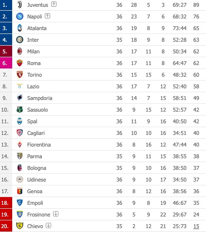 Successo importantissimo per la Roma che resta in corsa per la Champions. Con la vittoria contro la Juventus, la formazione di Ranieri raggiunge così a quota 42 il Milan e si riporta davanti al Torino che ora scende al settimo posto. Per la lotta in Europa bisogna attendere ancora la gara dell’Inter di domani contro il Chievo. I nerazzurri sono ora a quota 62, meno due dall’Atalanta.