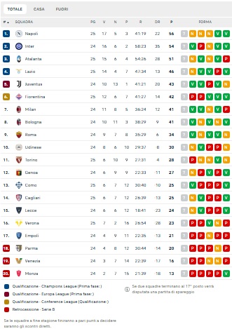Colpaccio in ottica corsa salvezza del Como che vince 2-0 sul campo della Fiorentina. Battuta d'arresto importante invece per gli uomini di Raffaele Palladino che restano fermi a quota 42 al sesto posto, con però Milan e Bologna distanti ora solo un punto e con una partita da recuperare. Di segujito la classifica di Serie A aggiornata.