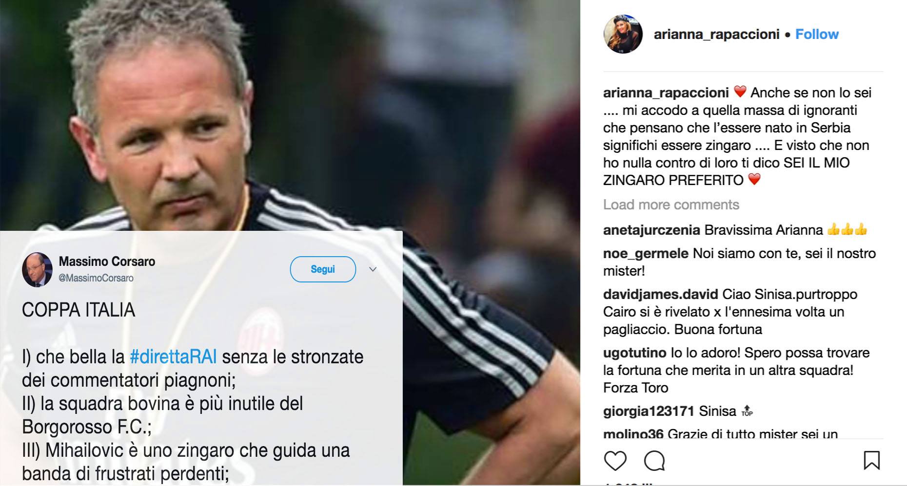 Massimo Corsaro, deputato di destra, si è reso protagonista di un brutto episodio sui social network. Il politico, juventino sfegatato come scrive egli stesso nella sua biografia di Twitter, si è così espresso su Mihajlovic e anche sul Napoli, provocando le reazioni veementi dei tifosi e anche della moglie di Sinisa: