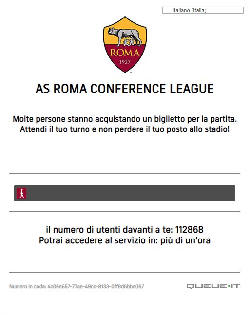 Una città intera attende con ansia di rivedere la Roma in campo in Conference League e la biglietteria online è stata presa d'assalto dal popolo giallorosso. Al momento sono più di 100.000 i tifosi in coda, in attesa del proprio turno, per provare a comprare un biglietto per la semifinale contro il Leicester in programma il 5 maggio alle 21 all'Olimpico.