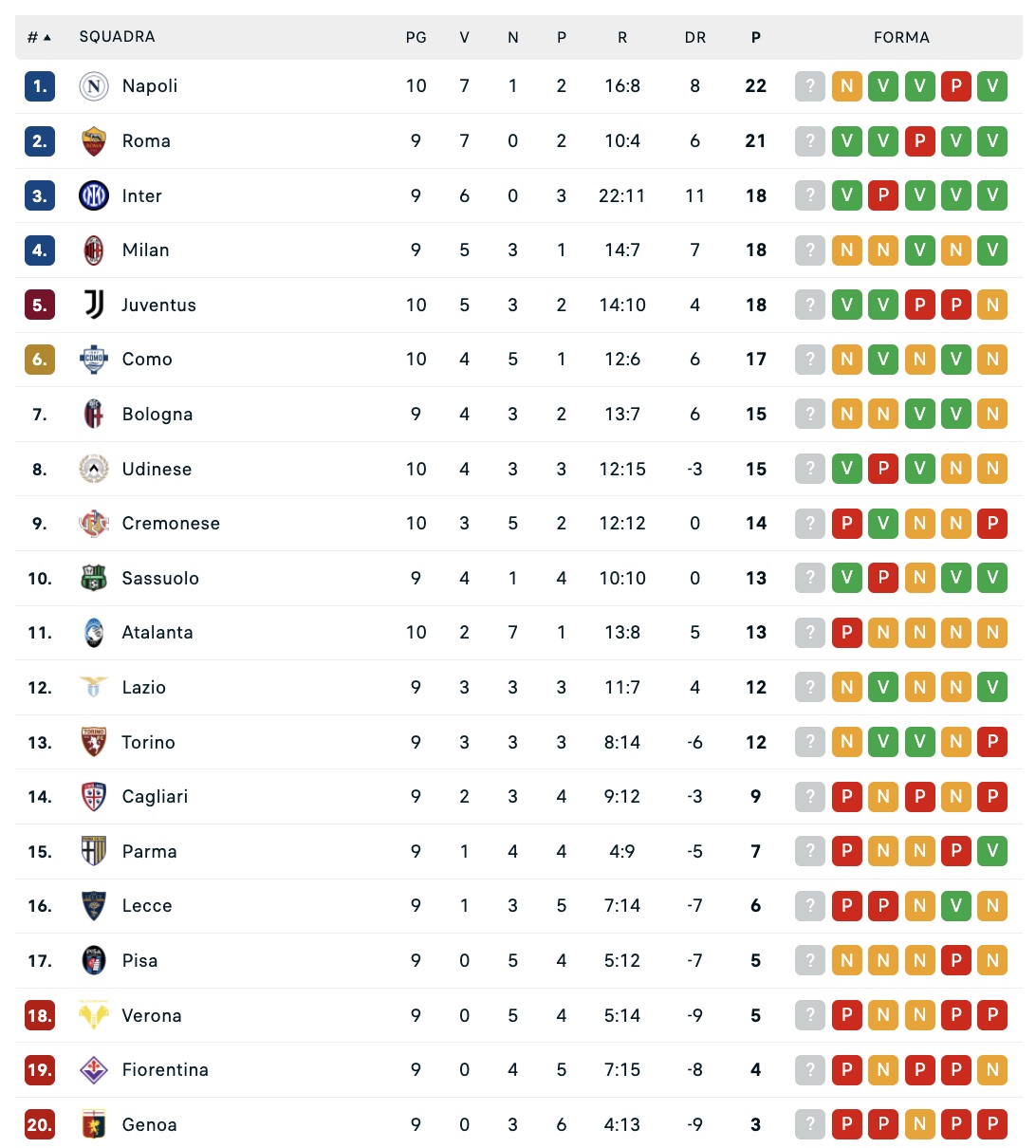 Di seguito la classifica aggiornata dopo i match del sabato: