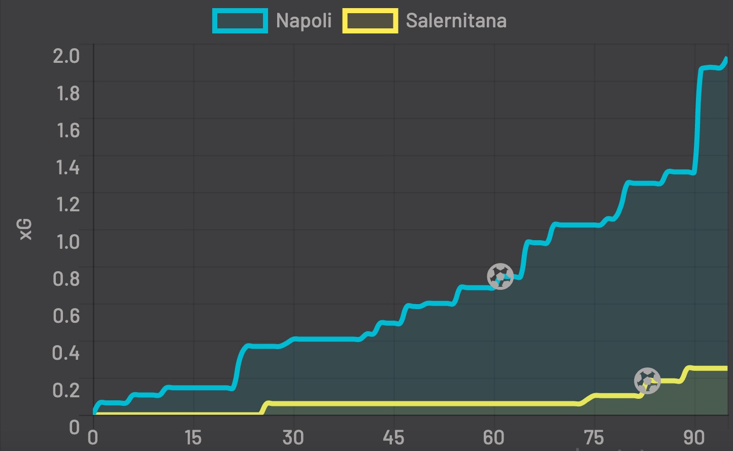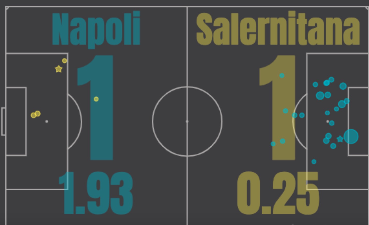 ALMENO DUE GOL DI SCARTO - Al giorno d'oggi ci sono tutti gli strumenti per analizzare con serietà una prestazione. Perché non utilizzarli? Parlare di 24 tiri a 5 o dei soliti dati statistici ad esempio neanche basta a spiegare la differenza di pericolosità tra Napoli e Salernitana: gli xG (gol attesi che valutano la pericolosità di ogni tentativo, usati da anni dai tecnici più importanti d'Europa) ci propongono un 1.98 a 0.25 e solitamente con questo risultato c'è almeno un risultato da 2-0 a salire. Quindi merito a Dia, autore del gol della domenica, da 0,08xG, in pratica probabile meno di una volta su 10, e demerito al Napoli che come nelle ultime gare non ha concretizzato sotto porta subendo poi un solo vero tiro sull'unica sortita degli avversari (il Napoli su quella punizione da centrocampo si attendeva un pallone veloce in area vista la punta in più e le zero azioni manovrate degli avversari, perciò Juan Jesus stringe troppo e Osimhen si ritrova lateralmente).