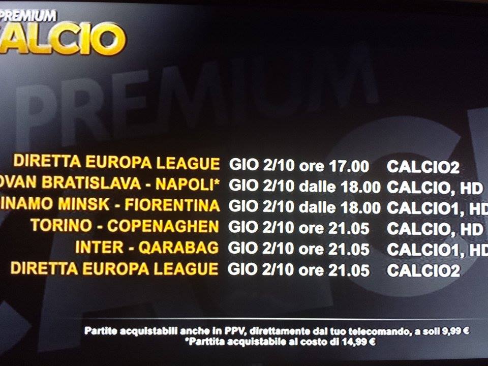 Fioccano le proteste sul web di centinaia di tifosi napoletani nei confronti di Mediaset Premium: l'emittente milanese, infatti, ha deciso di mettere in vendita in pay per view il match Slovan-Napoli al prezzo di 14,99 euro, ben 5 in più rispetto alle gare delle altre italiane impegnate in Europa League.