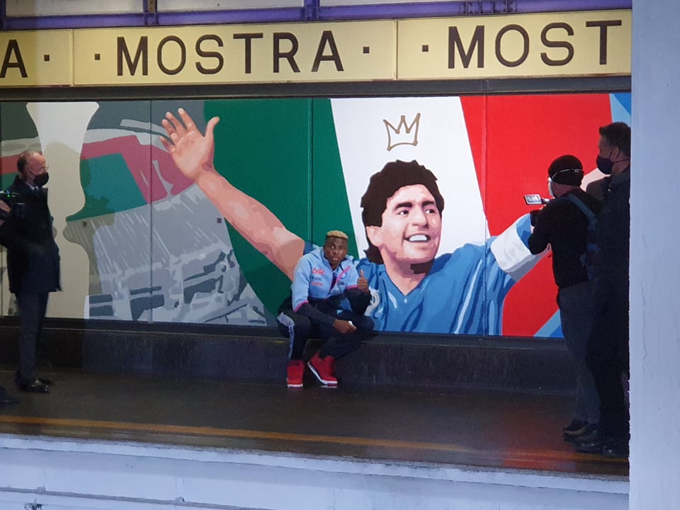 FOTOGALLERY - Osimhen e ADL all'inaugurazione stazione Mostra-Maradona con i murales dal 1926