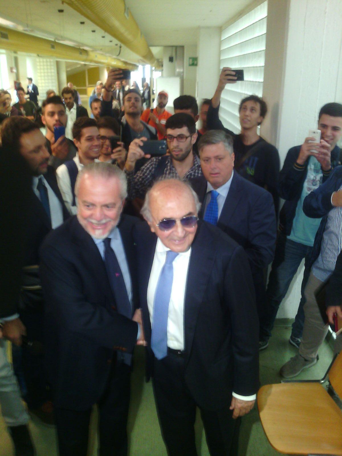 16.10 - De Laurentiis appare molto sereno, ha abbraccio Ferlaino e scattato alcune foto